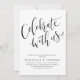 Modern simple invitations feature hand lettered "celebrate with us" script in black and white, customize it with your party details, elegant and stylish. Great for engagement party, wedding party, vow renewal party, and any celebrate events.