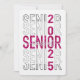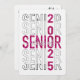 Join us as we celebrate the graduating class of 2025! Our senior class has worked hard to reach this milestone, and we're excited to honour their achievements. The invitation features a vibrant design with the word "SENIOR" repeated in bold, striking letters. In the centre, "SENIOR" is filled with pink glitter, while "class of" is written in an elegant white cursive font, creating a festive and memorable look. The number "2" is cleverly incorporated into the design, replacing the letter "I" in "SENIOR" with the same pink glitter texture, adding a touch of sparkle and creativity. Come celebrate with us and make this graduation unforgettable!