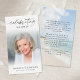 This personalized Celebration of Life prayer card offers a gentle and uplifting way to honor a loved one’s memory. The front features a soft photo portrait paired with elegant script typography reading “Celebrating the Life of,” while the reverse showcases a tranquil beach shoreline background with an editable comforting remembrance message. Thoughtfully designed to reflect peace, love and remembrance, this custom photo card serves as a meaningful keepsake for family and friends at a funeral, memorial service or Celebration of Life, offering comfort long after the service has ended. Its small and portable size of 3.5x2" (wallet-sized) makes it convenient to carry as a reminder of their life and spirit. Personalization makes each card unique.