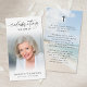 These personalized memorial prayer cards offer a beautiful way to celebrate a life well lived while providing comfort to family and friends. The front features a softly faded photo with elegant script typography reading “Celebrating the Life Of,” creating a gentle and uplifting tribute. The reverse displays a peaceful beach scene accented with a cross and an editable heartfelt prayer that reflects faith, gratitude and enduring love. Ideal for funerals, memorial services or Celebration of Life gatherings, these customizable cards serve as a meaningful keepsake to honor a loved one’s memory. Its small and portable size of 3.5x2" (wallet-sized) makes it convenient to carry as a reminder of their life and spirit. Personalization makes each card unique.