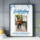 Celebrating the life Photo Funeral Poster is created by szdesign. Design is consists of blue floral drop and big blue typography that makes decent contrast.