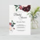 Cette invitation à la douche nuptiale "Célébration d'été" inspire une atmosphère florale traditionnelle et élégante pour une douche nuptiale de jardin. Avec ses fleurs bordeaux roses, bleues royales et cabernet, ses riches roses et son palais bleu marine, sa parties scintillant dorée complètent les thèmes officiels du printemps, de l'été et de l'automne, créant une expérience de célébration de luxe classique et polyvalente.