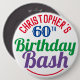 To celebrate a special birthday. Designed for someone who is 60 years of age. 60th birthday celebration. Birthday bash. Add the name and number. Birthday party button badge.