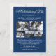 Celebrate the meaningful life of your loved ones with our elegant personalized funeral memorial invitations. Featuring a stylish blue background and a modern celebration of life template, it gives a heartwarming touch to sharing their memory. The design gracefully integrates five selected photos of your loved one, creating a delicate yet powerful tribute to their remarkable journey. Commemorate life's unforgettable moments with us.