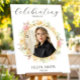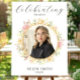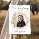 Honor your loved one with this elegant celebration of life poster featuring a beautiful floral wreath on white background and a customizable photo. This modern memorial design brings warmth and grace to any funeral or life celebration. Perfect for display at entrance sign, or memorial ceremony, it serves as a touching tribute and lasting keepsake. Personalize with name, dates, and photo to create a meaningful remembrance. (2222).