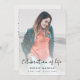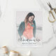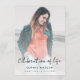 Modern, minimalist photo order of service funeral program to celebrate the life of your loved one in a minimalist clean simple design style featuring a handwritten script font and a soft dove grey background. The program can easily be personalized with your own photo and text to create a special tribute for your loved one's funeral, memorial or celebration of life. The image shown is for illustration purposes only to be replaced with your own photo. The placeholder image shows a young woman with long wavy brown ombre hair wearing a leather jacket, orange lace top and white jeans.#funeral #orderofservice