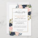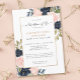 Celebration of life funeral memorial invitation featuring pink blush and navy blue floral botanical watercolor. Easily personalize this template for your loved one.
