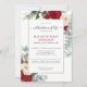 Celebration of life funeral memorial invitation featuring red white rose floral botanical watercolor. Easily personalize this template for your loved one.