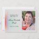 A simple and peaceful red and dusty blue gradient provides the background for this modern Celebration of Life Invitation. A picture of your loved one is on the right and a red aura balances it on the left. Three lines on the front let you describe your event. There is more text on the back that you can customize.
