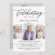 Modern, elegant photo collage Celebration Of Life invitation. Design features 3 photos, typography script and service details on the front. Personalize further with another photo on the back.