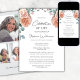 Celebration of Life Invitations | 4 photo collage Peach rose design. Honour the life of your loved one with this elegant memorial service invitation ready to customize. If you would like to change the colour or style of the font please click customize further at the end of the template.
