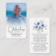 A simple memorial card features "Celebrating the Life of" with your loved one's photo, name & dates, and a poem and a blue flowers on the back (can be changed to your own words.) Beautiful for a treasured keepsake, funeral services, and celebration of life memorial. MATCHING items in our collection.