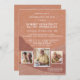 An elegant and unique Celebration of Life invitation features a terracotta Boho Landscape background. Three of your favourite photographs can be placed at the bottom. Bold white text makes it easy to read the details. All of the text can be easily edited to create a personal remembrance. Need help finding matching items? Message me. I'm Nelda and I'd love to help!