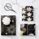 Celebration gift wrap paper in white, gold and colours on black, featuring, fireworks and stars, white gold star pattern and coloured balloons. This versatile selection of wrapping papers can be used for New Year's eve gifts, for birthday gifts, and for almost any celebration or event.