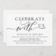 Moderne calligraphie simple romantique minimaliste, Carte d'invitation de mariage ou de dîner en fuite (Célébrez avec nous). C'est parfait pour votre annonce de mariage et votre célébration de fête, après votre meilleur jour. Ajoutez vos coordonnées dans la même police / lettrage noir.