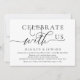 Invitation moderne romantique minimaliste avec calligraphie simple, carte d'invitation pour dîner ou soirée de mariage intime (Célébrez avec nous). Elle est parfaite pour votre annonce de mariage intime et célébration de fête, après votre plus beau jour. Ajoutez vos détails dans une police / lettrage noir assorti.