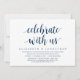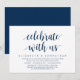 Moderne écriture en thème bleu marine classe, carte d'invitation de mariage intime (Célébrez avec nous). C'est parfait pour votre dîner de mariage intime décontracté au bord du lac, dansant et faisant la fête.