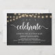 Célébrons, Faire-part de mariage / Carte d'invitation, dans un style rustique de ferme au tableau noir, conception de guirlandes lumineuses. C'est parfait pour votre réception de mariage et la fête de célébration après le mariage. Ajoutez vos détails dans la même police / lettrage.