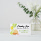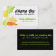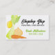 Pretty simple food, fruit and vegetable business card for vegan cooks, chefs, cooking classes and foodies. Bunch of celery, a lemon, and carrot on a red-orange background.