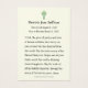 Honorer la mémoire de votre être cher avec ce mémorial funéraire catholique traditionnel avec un noeud celtique orné en or et un design shamrock. Le devant comprend un cadre photo circulaire avec les mots "In Loving Memory" et le nom du défunt. Au contraire, une prière catholique réconfortante pour le repos de l'âme, personnalisée avec des dates de naissance et de passage. Une belle expression de la foi et du patrimoine irlandais, idéal pour les réveillons, les messes funéraires, ou comme gardiens pour les amis et la famille.