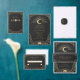 A striking black and gold belly band with radiant starburst and geometric Art Deco corners. Wraps your wedding suite in celestial elegance. Please note: not gold or gold foil.