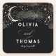 Celestial Black and Gold Mystical Wedding Square Paper Coaster