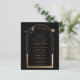 Celestial Black Gold Bilingual Spanish Quinceañera Invitations features an elegant gold sun, moon and stars with a golden frame on a black background. Inside is your custom Quinceañera invitation information in English. On the reverse is the invitation in Spanish. Personalize by editing the text in the text boxes. Designed for you by Evco Studio www.zazzle.com/store/evcostudio
