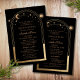 Celestial Black Gold Bilingual Spanish Quinceañera Invitations features an elegant gold sun, moon and stars with a golden frame on a black background. Inside is your custom Quinceañera invitation information in English. On the reverse is the invitation in Spanish. Personalize by editing the text in the text boxes. Designed for you by Evco Studio www.zazzle.com/store/evcostudio
