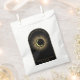 Celestial mystical personalized wedding favour bag featuring arch frame with galaxy milky way midnight sky, star dust, crescent moon and other astrological symbols in black and golden colours and written quote "thankyou for celebrating with us". This product is easily editable. If you need help with the customization of this product or you need more matching products for this collection kindly message me via Zazzle.