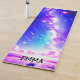 Pretty bright pink and blue fantasy starscape yoga mat with your name customized on the front. This design is printed on both sides of the yoga mat.
