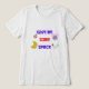 This T-shirt features a bold and colourful design with the phrase ‘GIVE ME SOME SPACE.’ The design includes space-related images such as rockets, planets, an astronaut helmet, and stars. The theme of the design is playful and focuses on space exploration and astronomy.