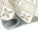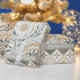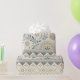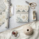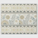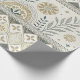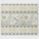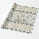 A seamless folk-art inspired pattern wrapping paper combining celestial and botanical elements in earthy tones of beige, gold, teal, and cream. The central band features stylized leaves, flowering branches, crescent moons, and stars, framed by intricate geometric borders of diamonds, zigzags, and circles. With its cultural and artisan feel, this design blends nature with celestial charm, creating a timeless rustic aesthetic. Ideal for folk art enthusiasts, boho and tribal design lovers, or anyone drawn to celestial and botanical motifs. Perfect for seasonal décor, artisan gifts, and rustic-inspired celebrations.