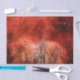 A striking red celestial celebration with stars and birds in a exciting red sky.