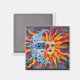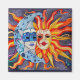 Original watercolor painting by Sandra Gale, featuring two masks representing the sun and the moon. These masks, each with its traditional colour combinations; cold blue, purple and silver for the moon and hot red, orange and gold for the sun. These masks wear the smile and frown of the Comedy and Tragedy style theatre masks and are surrounded by celestial bodies like stars and planets. This is a great design for theatre lovers, actors, kids and adults or anyone who loves astrology, sun and moon themes and overall Mardi-Gras types of festive party masks.