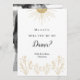 Ask your friends to be part of your special day with this elegant dama proposal card featuring gold celestial elements and your custom black-and-white photo. The mix of stars, moons, flowers and sun creates a dreamy, modern design that feels both magical and personal. A beautiful way to invite your court to share in your unforgettable Quinceañera celebration.