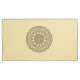A lace-like concentric circle mandala in dark blue with bright blue and gold star-like dots spangled among the layers makes for a fun, design that brings to mind a starry night sky.