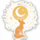 Mystical desert fox design in golden Sahara Aura™ tones, sitting beneath a crescent moon surrounded by stars and cosmic geometry. A magical blend of desert identity and celestial inspiration, perfect for apparel, art prints, and spiritual gifts.