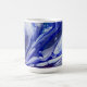 Soft whites blend effortlessly into deep ultramarine and indigo, while delicate clusters of “stars” drift across the design. The movement feels otherworldly, like watching galaxies stretch and swirl in slow motion.