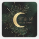Celestial Emerald Gold Moon Wedding Square Sticker