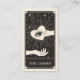 This business card features a tarot card style design in a black and cream colour palette. The illustration shows a hand holding a mystical eye in a heart surrounded by twinkling stars. This would be perfect for any beautician, salon or lash specialist who prefers an alternative style business card and wants to make their business card memorable.