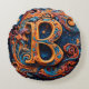 This captivating artwork features an ornate letter 'B' intricately designed with vibrant swirls and floral patterns. The design is set against a rich, dark background speckled with stars, evoking a sense of cosmic wonder. The bright orange and blue hues of the letter and surrounding motifs create a striking contrast, adding depth and dynamism to the piece. The overall composition beautifully blends elements of nature and celestial themes, making it a visually stunning representation of artistic elegance.
