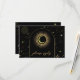 Celestial mystical personalized wedding response card featuring arch frame, galaxy milky way midnight sky with star dust, crescent moon and other astrological symbols in black and golden colours. This card is easily editable. If you need help with the customization of this card or you need more matching products for this collection kindly message me via Zazzle.