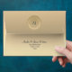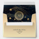 Mystical, elegant, modern, celestial boho gold foil and navy blue wedding 5x7 envelope with golden monogram - initials of bride and groom inside, starry night and return address.
