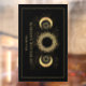 A celestial ethereal yoga instructor business window cling featuring a modern gold sun mandala with sun rays, and phases of the moon, with a pretty, modern script signature type. Faux gold foil effect.