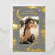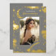 Each light grey and gold invitation offers a glimpse into your personal universe—a story waiting to unfold. Your photo takes centre stage, surrounded by the golden glow of the moon, the sweep of a shooting star, and constellations that weave tales of dreams. Galaxies sparkle with wonder, while distant planets reflect the endless possibilities ahead.