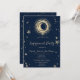 Celestial gold sun and moon, and stars on navy blue background. Beautiful invitation that can be customized with your name. Select the "customize" button to change the font style, colour, and size.