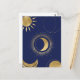 Celestial gold sun moon phases eclipse on a purple blue background.