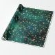 Celestial Golden Stars on Teal Galaxy Background Wrapping Paper