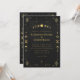 This Celestial Gothic black and gold wedding invitation features an elegant astrology-inspired design with luminous lunar phases, geometric tarot-style detailing, and refined antique gold accents set against a deep charcoal background.