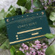 Celestial Green Gold Sun Moon Stars Astronomy Mystical Cosmic Space Wedding RSVP Cards features the sun, moon and stars with a gold frame on a green background with your custom RSVP Card information in elegant gold script typography. Designed for you by Evco Studio www.zazzle.com/store/evcostudio